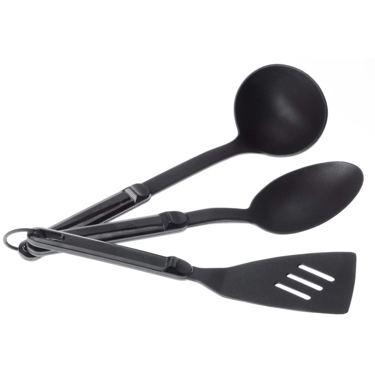 Praktisches Set für die Campingküche bestehend aus Pfannenwender, Schöpfkelle und großem Löffel.