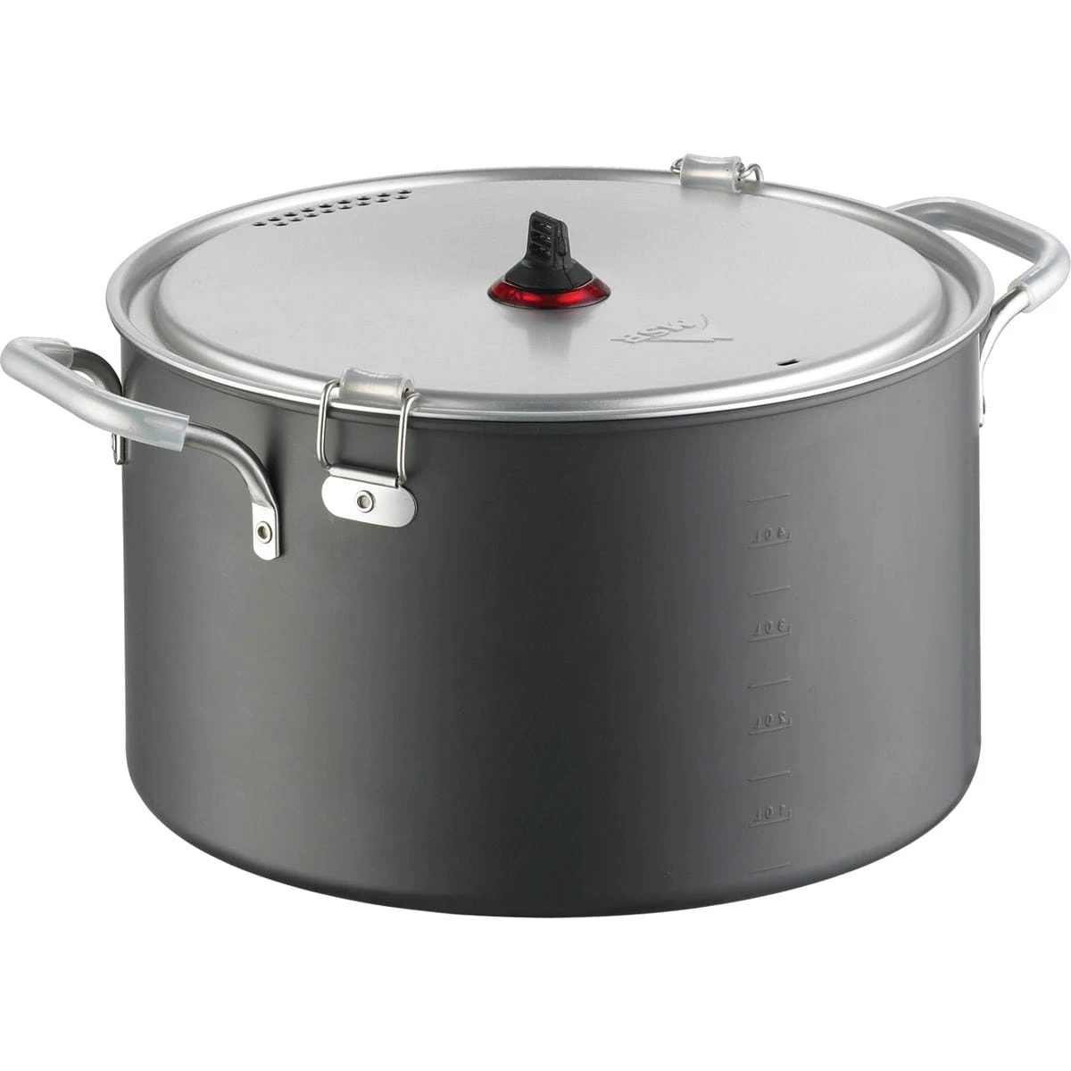 Merkmale: Große Kapazität: Gut greifbarer 5,3 Liter Topf mit zwei Griffen für große Eintopfgerichte und Aufkochen; Ineinanderpassendes Design: Spart wertvollen Platz im Rucksack und im Auto; Zwei Kochflächen: Zwei Töpfe aus harteloxiertem Aluminium, einer mit Antihaftbeschichtung und einer ohne Beschichtung, sorgen für ein Maximum an Einsatzmöglichkeiten; Komplettset: Mit zwei Deckeln sowie Isobechern und Deep Dish Tellern für vier Personen