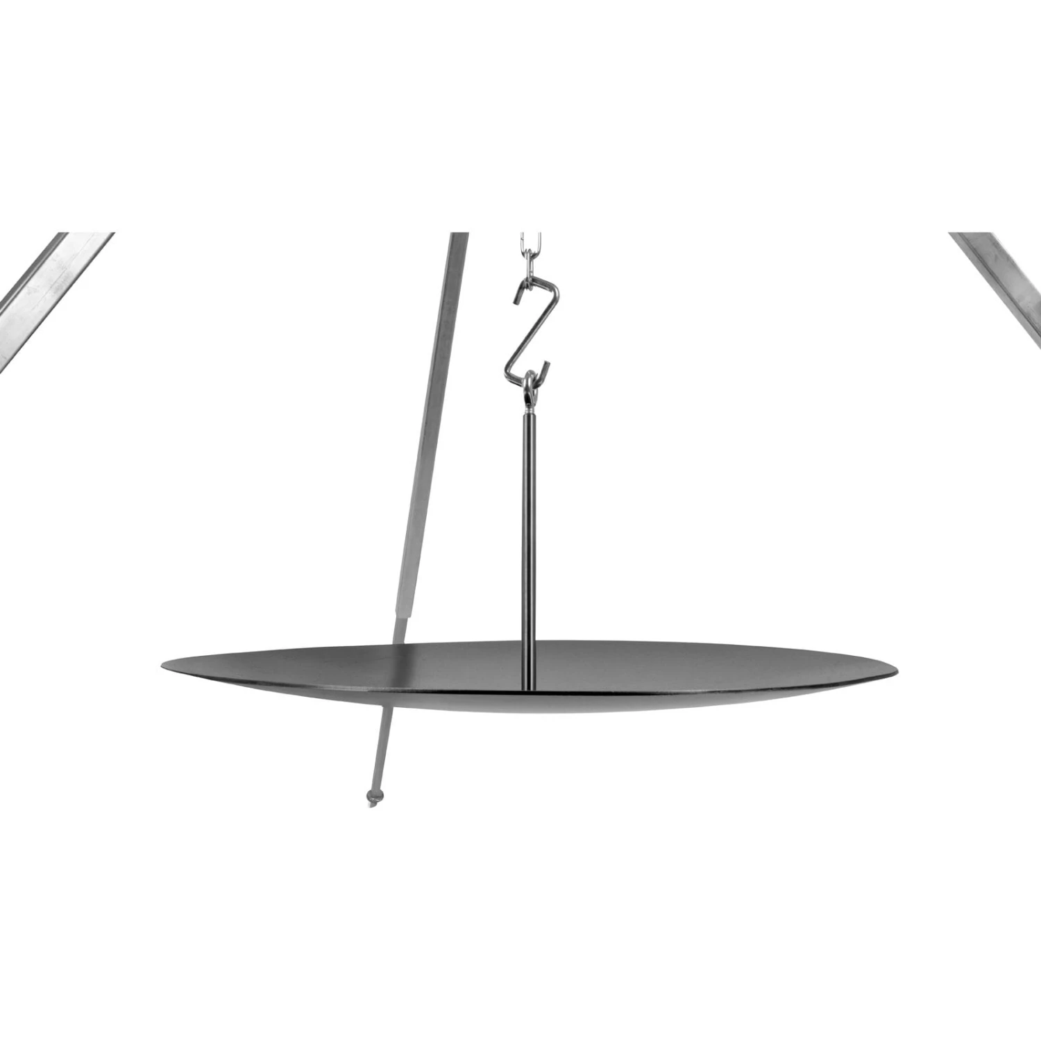 Mit der Hänge-Feuerschale kombiniert man das Kochen, Braten und Garen über offenem Feuer mit echter Wild West Küche: Mittels der Stab-Öse hängt man die Schale sicher und schnell an den Haken eines Dreibeins (Dreibein nicht im Lieferumfang). So über der Feuerstelle positioniert, kommt der Stahl im Handumdrehen auf Temperatur. Dabei brät dein Fleisch besonders schonend, da Sud und Saft erhalten bleiben. Bestimmen sie die benötigte Hitze ganz nach den eigenen Bedürfnissen, indem man den Abstand zum Feuer mit der Länge der Dreibeinkette reguliert. Wie beim Kochen mit den Petromax Grill- und Feuerschalen entstehen auch hier unterschiedliche Garzonen, die einem das Braten von Filets in der Mitte und das schonende Gemüsegaren oder Warmhalten von Speisen am Rand möglich machen. Mit einem Durchmesser von gut 56 cm versorgt man sich und die Truppe mit einer großen Auswahl unterschiedlicher Gerichte unter freiem Himmel. Kommen Sie auf den Geschmack der amerikanischen Prärie und werden zum waschechten Viehtreiber mit der Cowboykochstelle, der Petromax Hänge-Feuerschale Made in Germany.