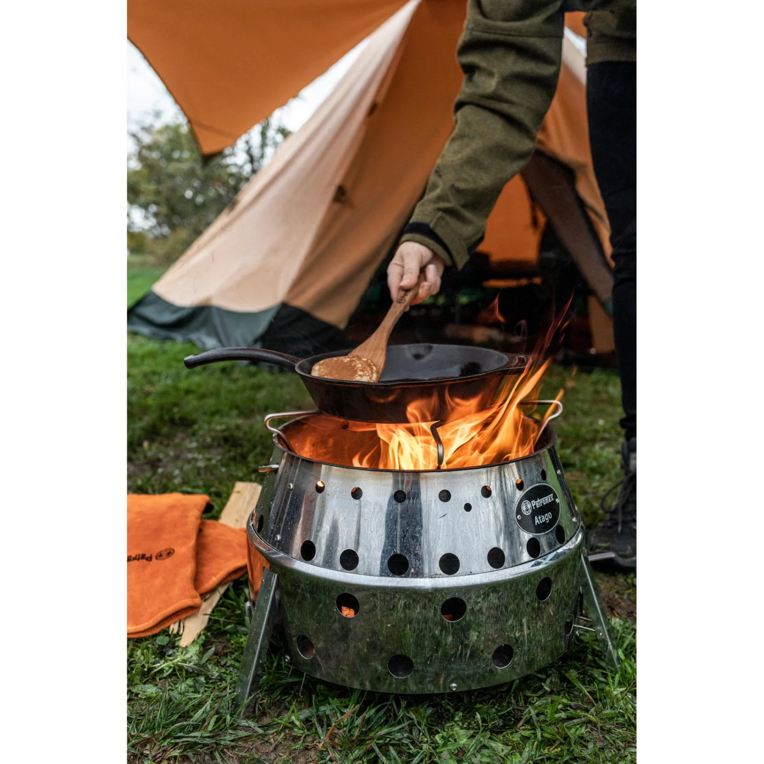 Mit dem Kochkreuz bring man Feuertöpfe, Pfannen und Co. auf dem Atago so richtig zum Brodeln. Einfach in die Öffnung der funktionalen Draußen-Kochstelle eingesetzt bildet das kompakte Zubehör eine stabile Auflagefläche für Guss- und Schmiedeeisen. So kombiniert man alle Feuertopf- und Pfannenmodelle sowie Petromax Sonderformen aus Gusseisen frei nach seinem Geschmack. Stillen Sie so den Bärenhunger: Der Kochaufsatz aus Edelstahl trägt die Töpfe und Pfannen aus Gusseisen zuverlässig und hält der Gluthitze stand. Die spezielle kreuzförmige Konstruktion samt mittiger Aussparung verschafft eine breitere Auflagefläche und genügend Raum für Feuertopf-Modelle mit Füßen. Zudem wird so Platz für Griff und Füße ausgespart, dass der Feuertopfdeckel problemlos als Pfanne genutzt werden kann.