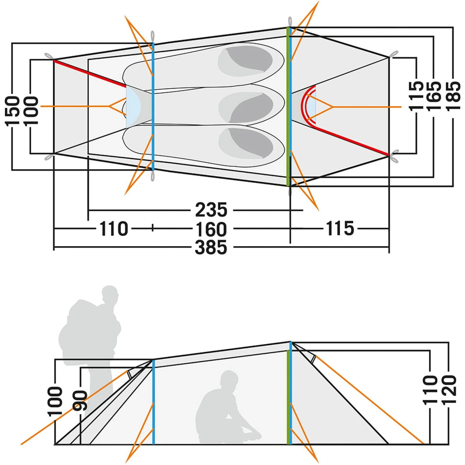 | Eingänge Außenzelt | zwei |