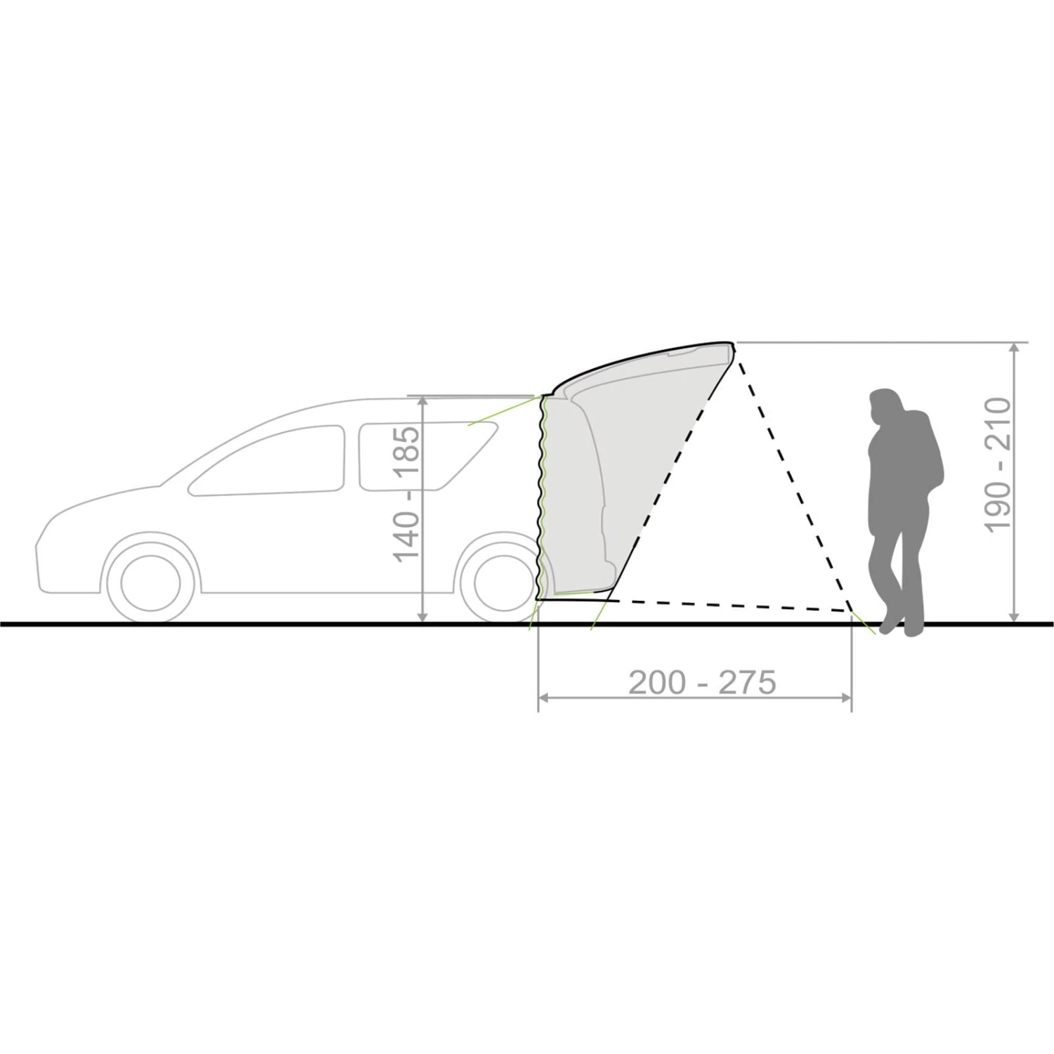 Bitte beachten Sie: Sie finden bei den Bildern eine Maßskizze, anhand derer Sie erkennen können ob das Zelt zu Ihrem Auto passt. Wir können keine Anfragen beantworten die sich auf bestimmte Modelle beziehen da wir die Autos nicht hier haben und nachmessen können, Sie hingegen schon.